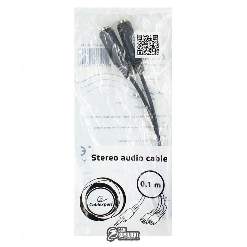 Кабель звуковой Cablexpert CCA-415-0.1M 3.5мм M/F 2х3.5мм, переходник,10 см (128225)