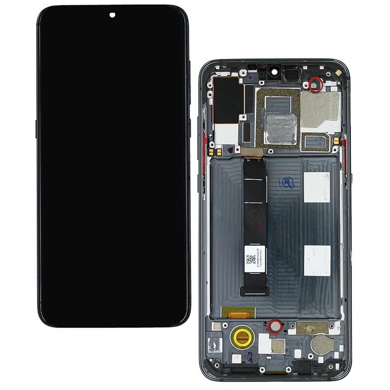 Дисплей Xiaomi Mi 9, черный, с тачскрином, с рамкой, оригинал (переклеено стекло), M1902F1G (141512)