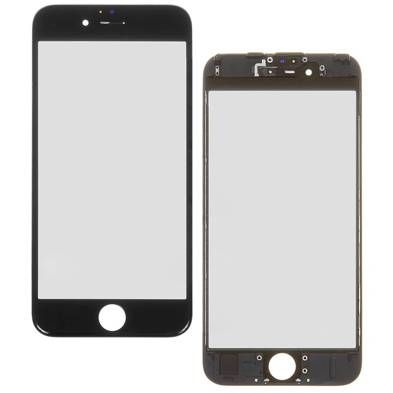 Стекло дисплея iPhone 6S, с сеточкой, с рамкой, черный (146001)