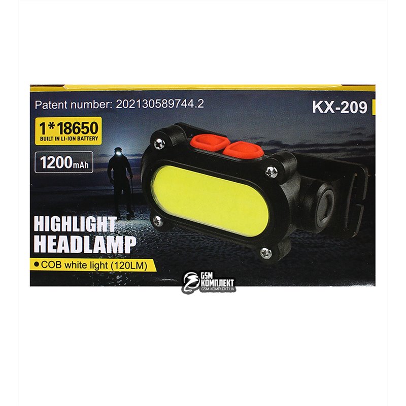 Налобный фонарик BL-209-COB (white+red), Waterproof, встроеный аккумулятор, ЗУ micro USB (155997)