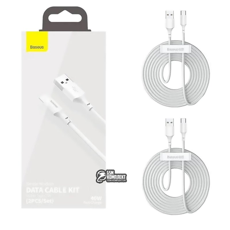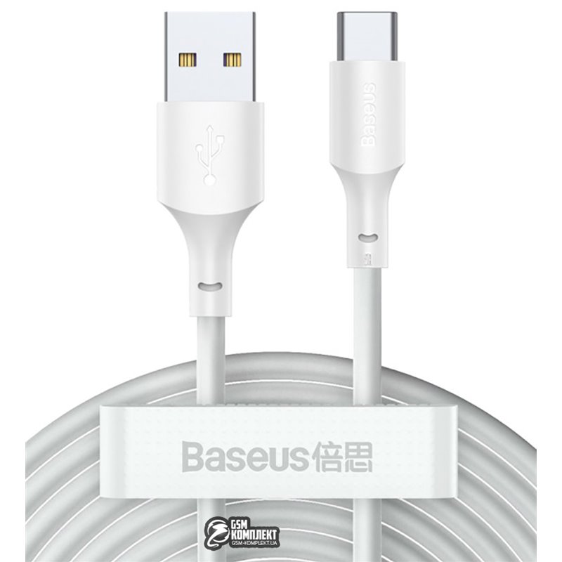 Кабель Type-C - USB, Baseus Simple Wisdom Data Cable Kit, 1.5 метра, 5A, 2шт, TZCATZJ-02, белый (156171)