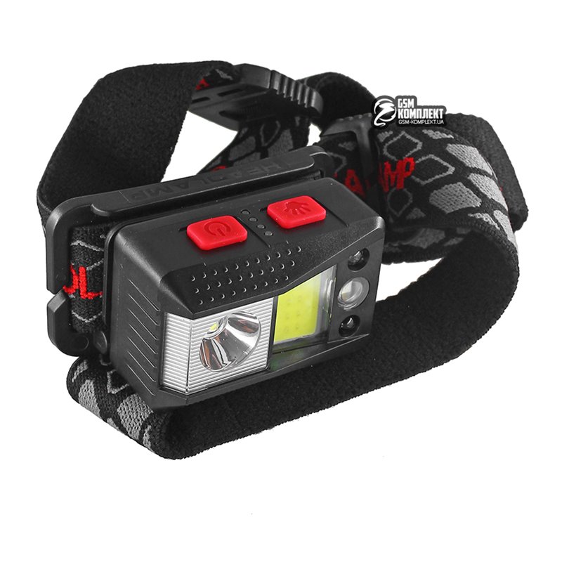 Налобный фонарик SL09-1L2+COB+LED (Red+Green+Blue) (зарядка от TypeC, датчик движения) (156741)
