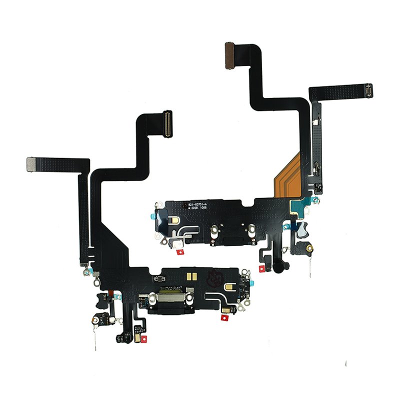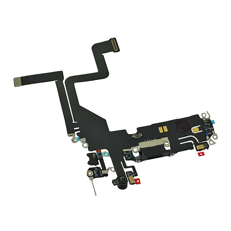 Шлейф для iPhone 14 Pro, коннектора зарядки, черный, с микрофоном, з компонентами, Original (PRC) (161305)