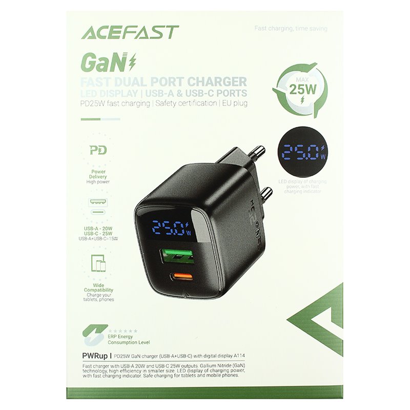 Зарядное устройство Acefast GaN A114 PD25W GaN с LED дисплеем (Черный) (173531)
