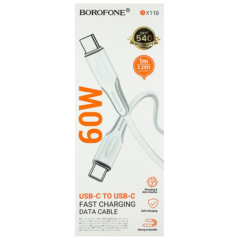 Кабель Type-C - Type-C, Borofone BX119, 1 м, PD 60 Вт (173595)