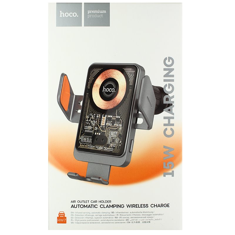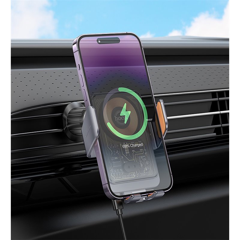 Автодержатель Hoco HW7, с беспроводной зарядкой 15W, metal gray (173646)