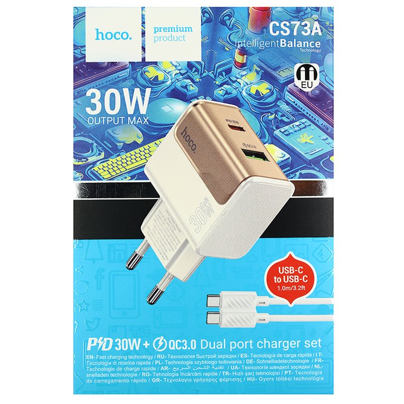 Зарядное устройство Hoco CS73A, USB, Type-C PD30Вт QC3.0, с Type-C - Type-C кабелем, белое (173696)