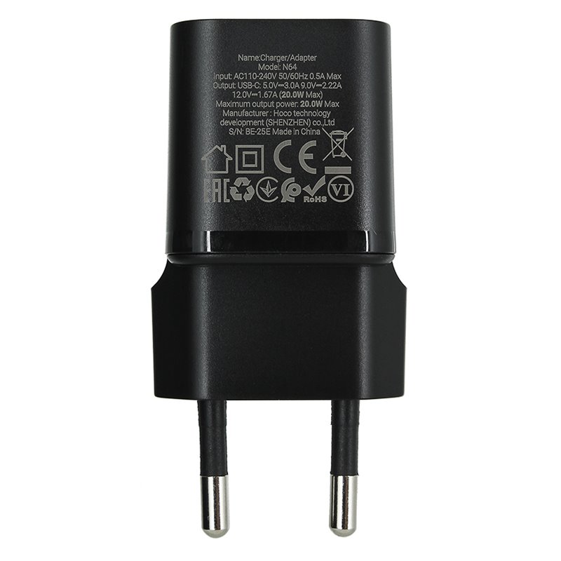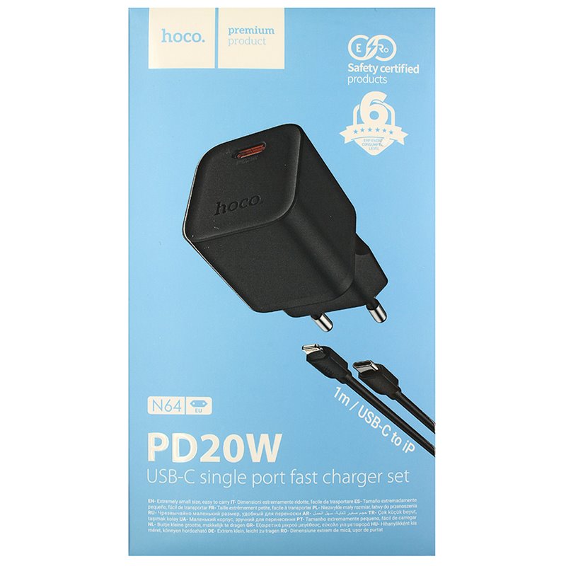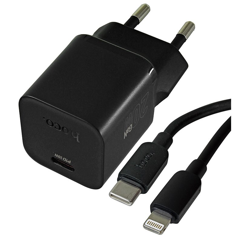 Зарядное устройство Hoco N64, Type-C PD20Вт, с Type-C - Lightning кабелем, черное (173703)