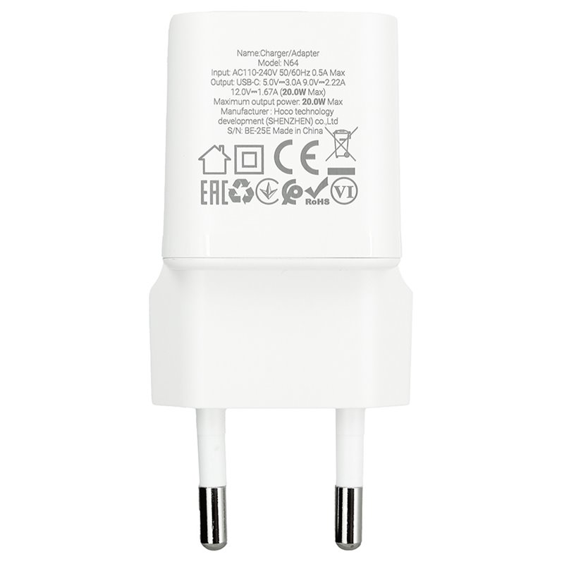 Зарядное устройство Hoco N64, Type-C PD20Вт, белое (173706)