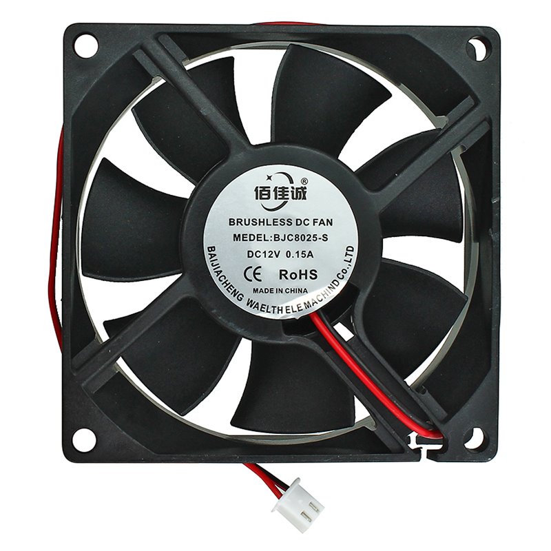 Вентилятор 80 х 80 х 25мм 12V BJC8025-S (2 провода) 0.15A подшипник скольжения (173897)