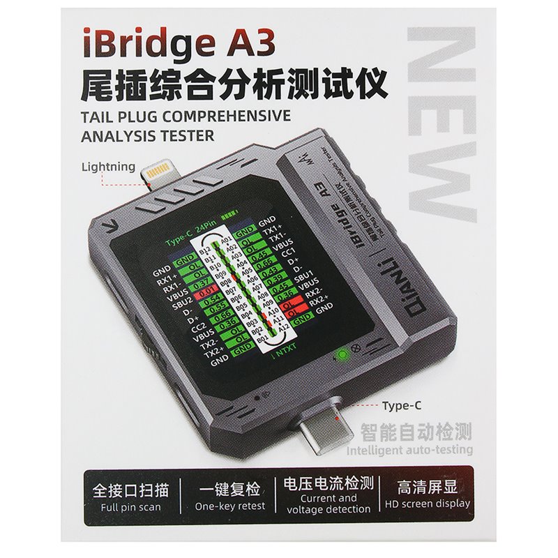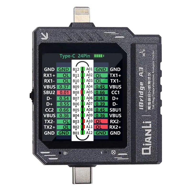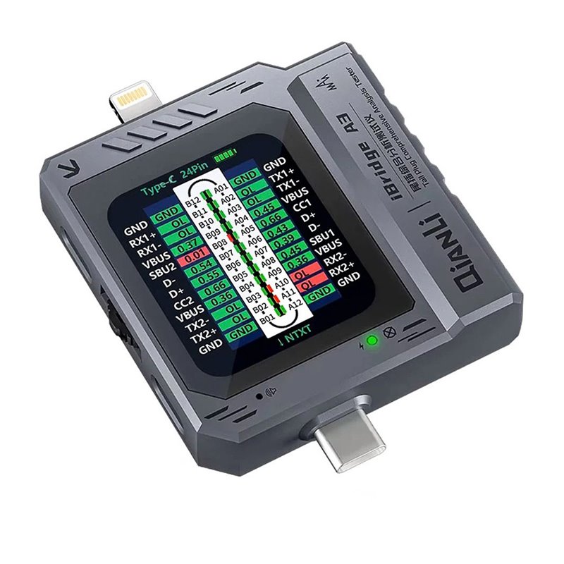 Тестер разъёмов питания QianLi iBridge A3 Type C - Lightning с ЖК дисплеем и встроенной АКБ (173970)