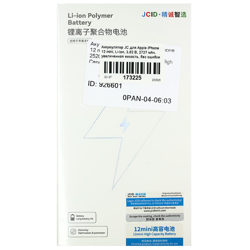 Аккумулятор JC для Apple iPhone 12 mini, Li-ion, 3,82 В, 2727 мАч, увеличенная емкость (173225)