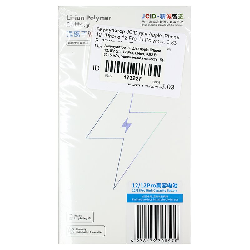 Аккумулятор JC для Apple iPhone 12, iPhone 12 Pro, Li-ion, 3,82 В, 3315 мАч, увеличенная емкость, без ошибки (173227)