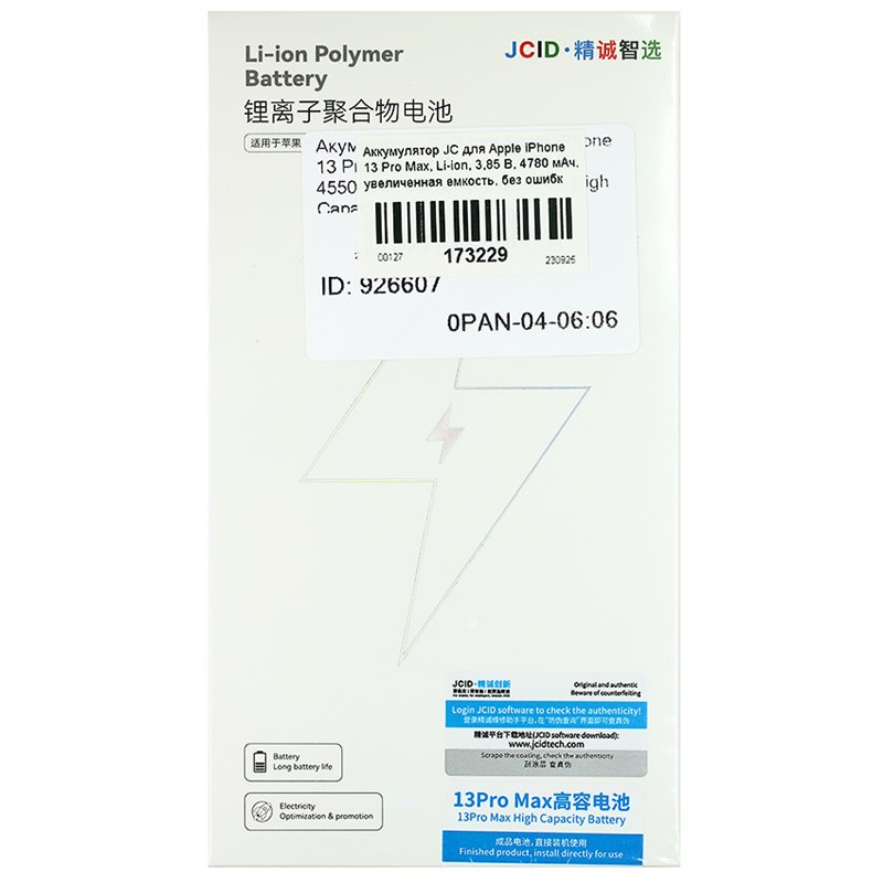 Аккумулятор JC для Apple iPhone 13 Pro Max, Li-ion, 3,85 В, 4780 мАч, увеличенная емкость, без ошибки (173229)