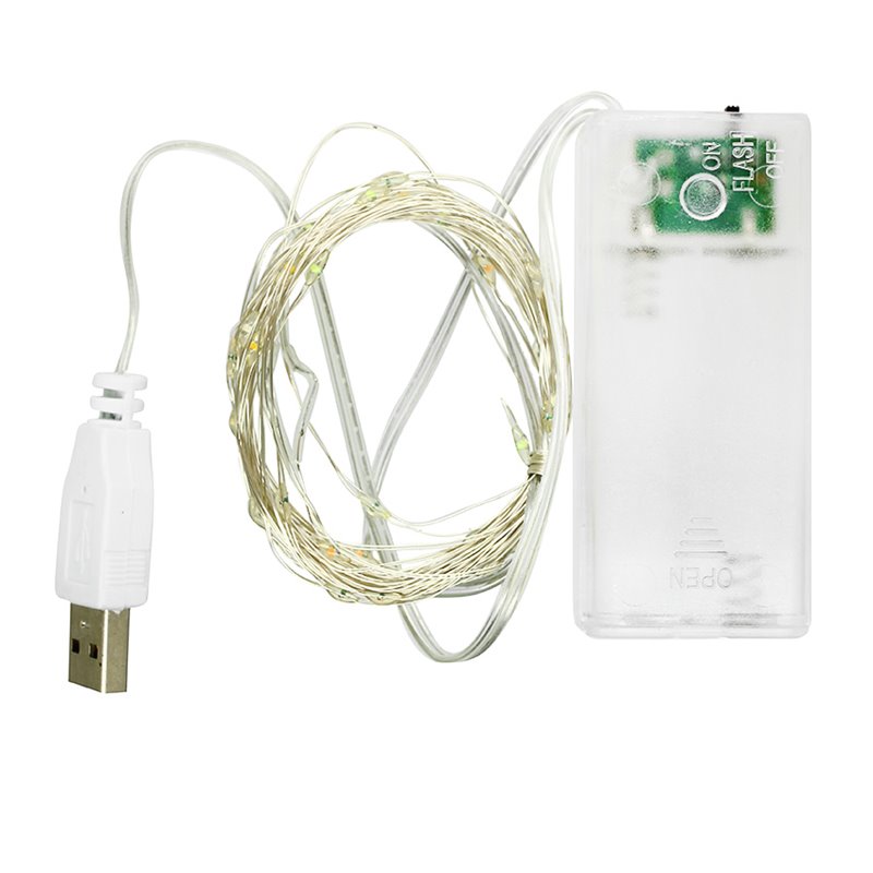 Светодиодная гирлянда Xmas Капля росы 50 Led 5m на медной проволоке Мультицветная от батареек AA, +USB (173938)