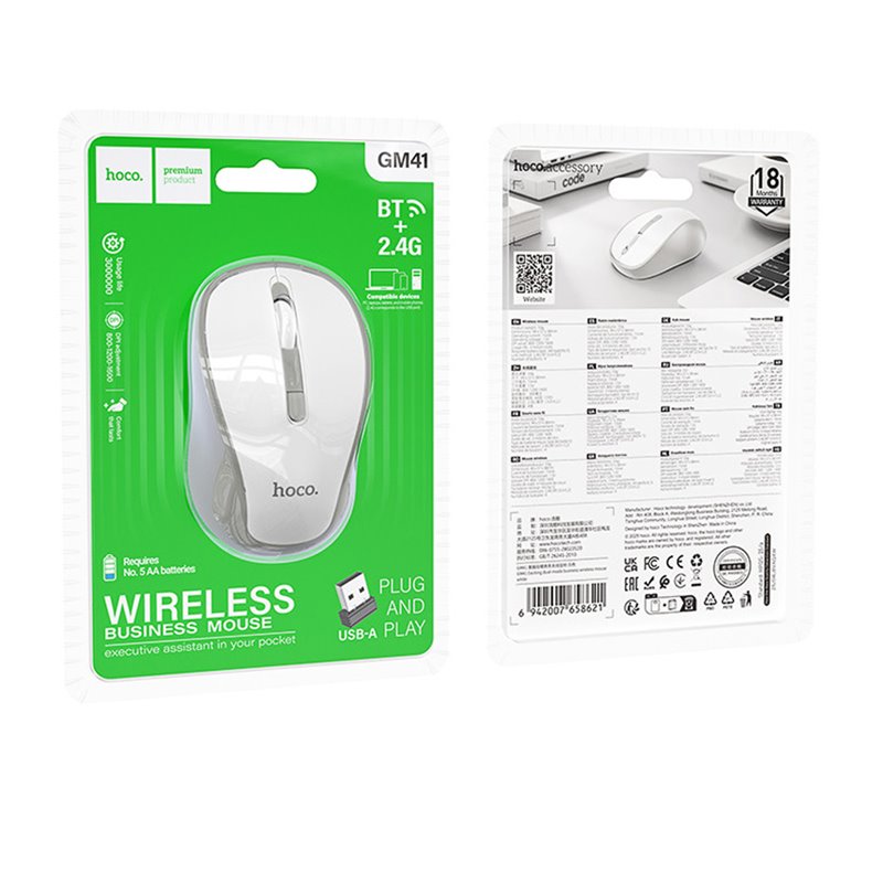 Мышь Hoco GM41, беспроводная, белая (174525)