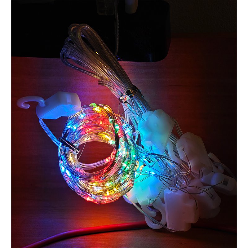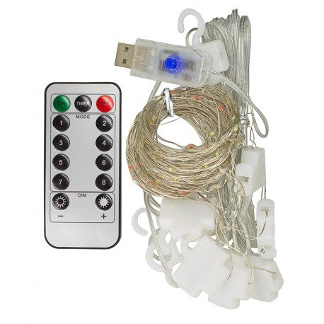 Светодиодная гирлянда штора, медная нить, разноцветная, 3 x 2 м, 8 режимов, с пультом, USB (174655)