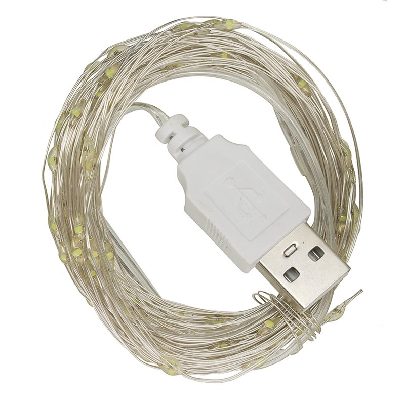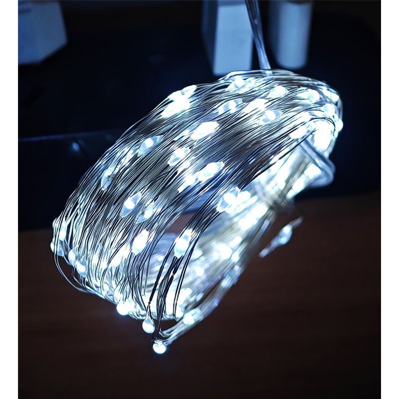 Светодиодная гирлянда, медная нить, холодный белый, 10 м, 100 светодиодов, USB (174662)