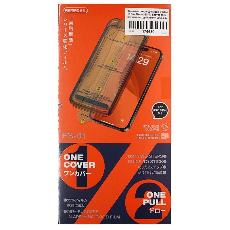 Защитное стекло для Apple iPhone 16 Pro, Remax ES-01 Easy to stick, 3D, комплект для легкой установки (174680)