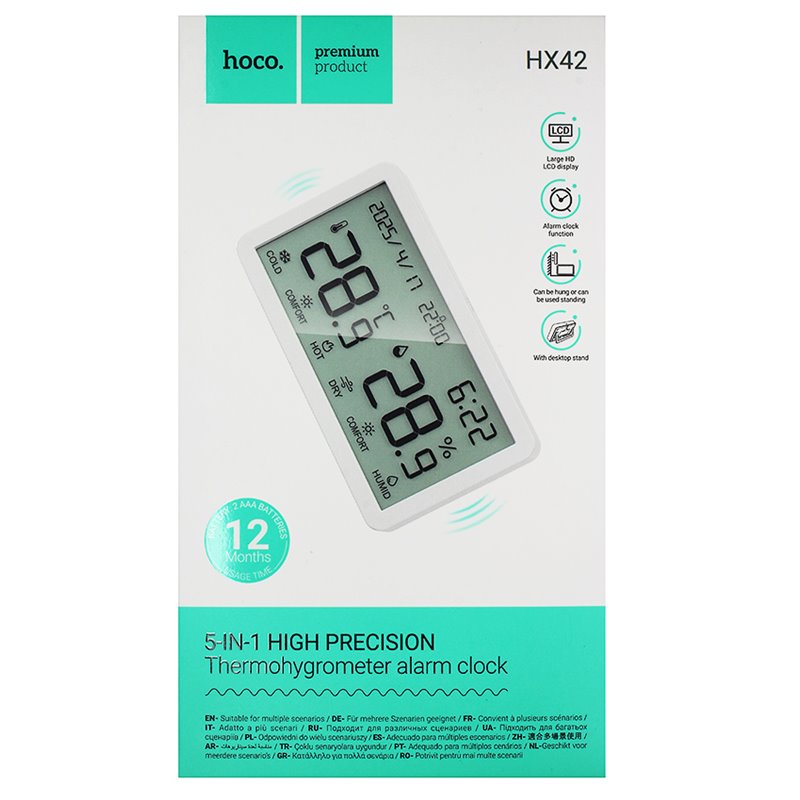 Цифровой термогигрометр Hoco HX42, (106*60*19mm) белый (174729)