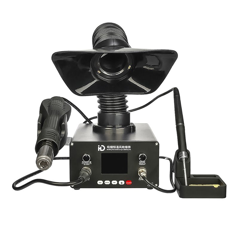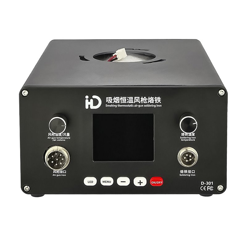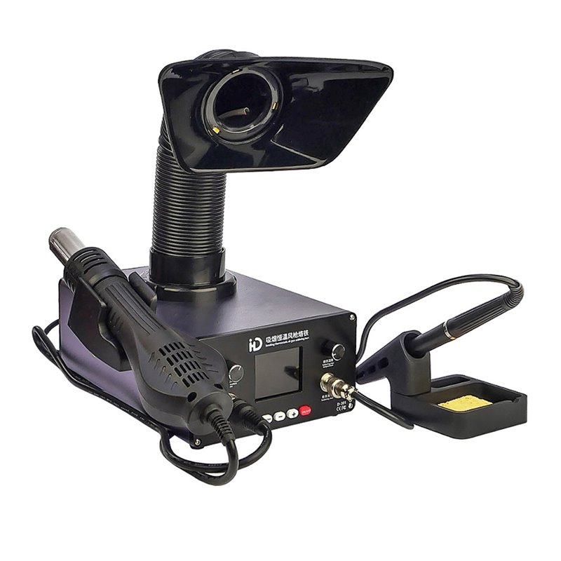 Паяльная станция прецизионная IHD D-301, фен, паяльник T12, цифровая индикация, вытяжка с угольным фильтром, LED подсветка (174797)