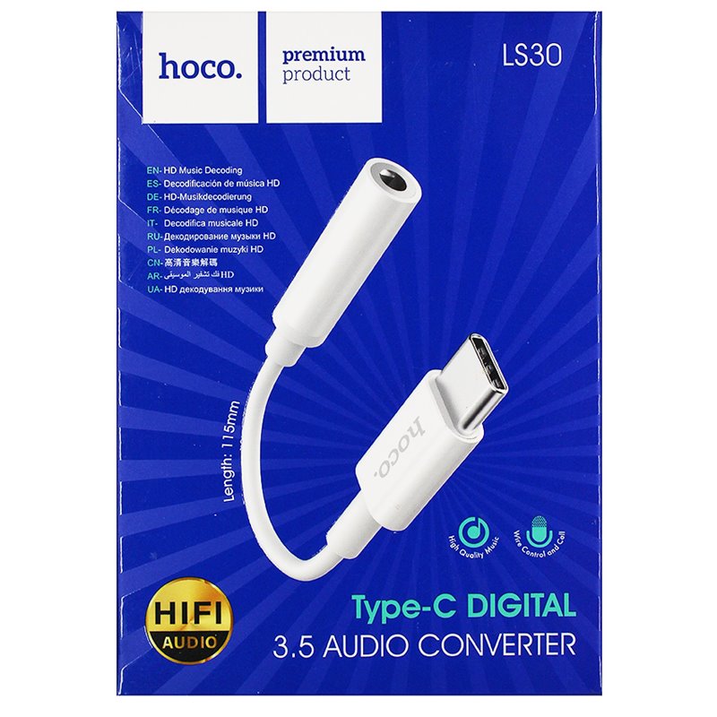 Адаптер переходник Hoco LS30, Type-C to Jack 3.5, белый (174798)