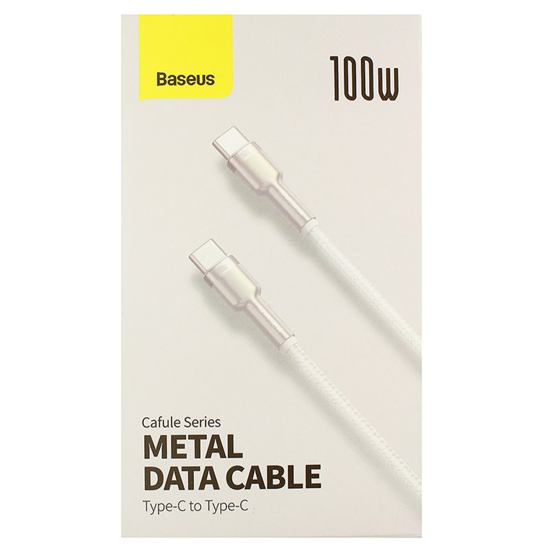 Кабель Type-C - Type-C, Baseus Cafule Metal, 100 Вт, 1 метр, белый CATJK-C02 (174570)
