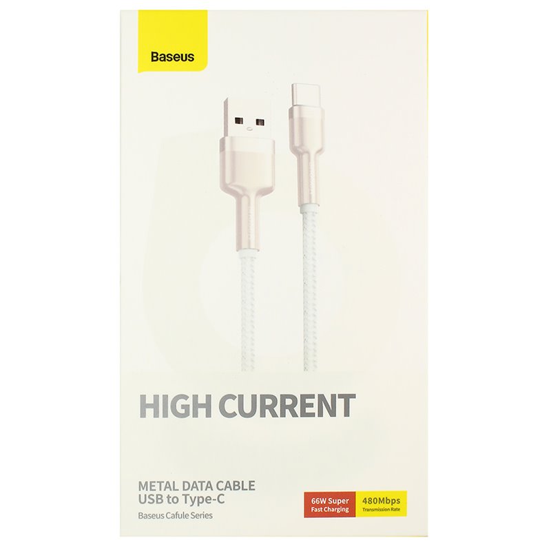 Кабель Type-C - USB, Baseus Cafule Metal, 66 Вт, 2 метра, белый (174571)