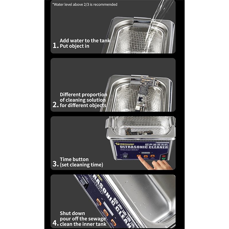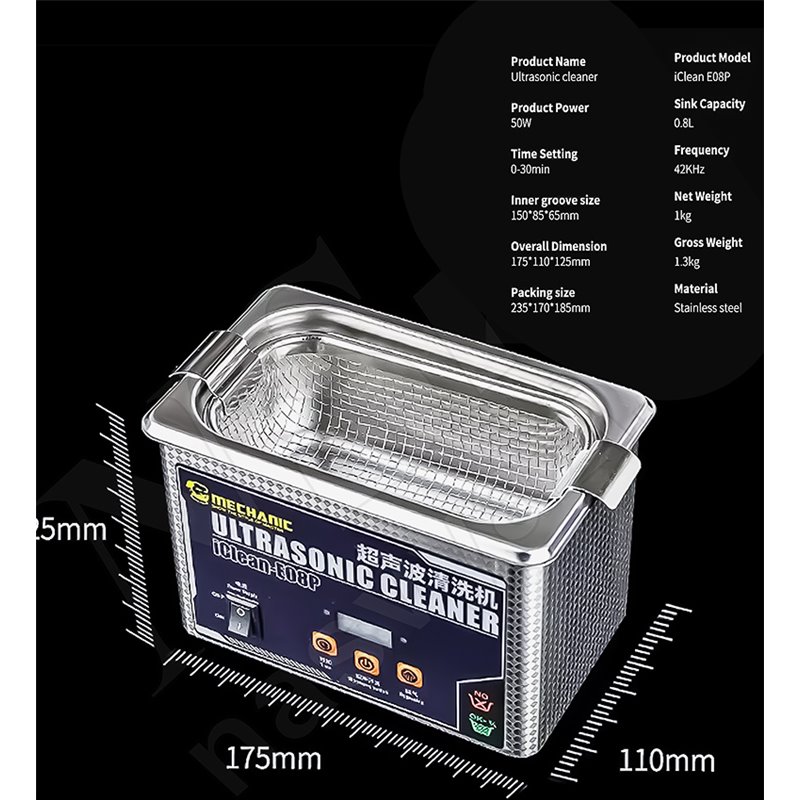 Ультразвуковая ванна Mechanic iClean-E08P, 0,8л, 50Вт, метал корпус (174824)