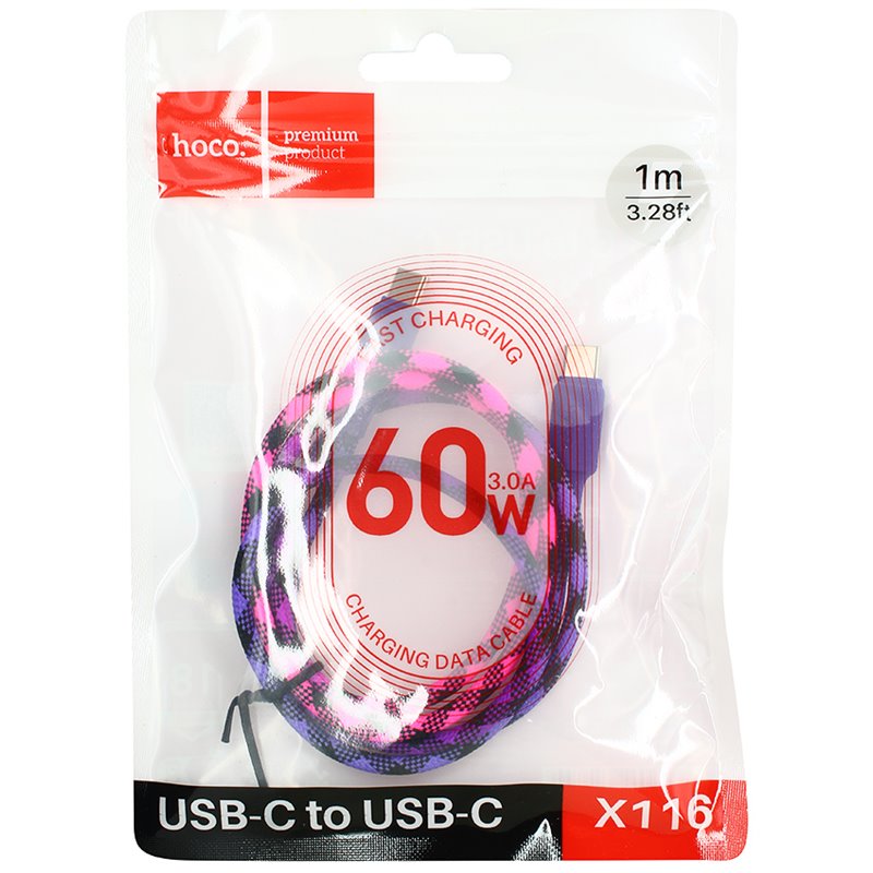 Кабель Type-C - Type-C, Hoco X116 Meridian PD charging data, тканевый, 60Вт, 3А, 1 метр, фиолетовый (175473)