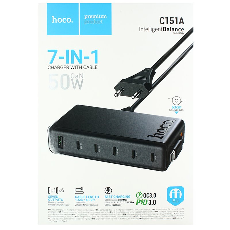 Зарядное устройство Hoco C151A Modern PD 6-port desktop charger 1USB/6Type-C, 50W/3A, PD/QC (black) (175489)