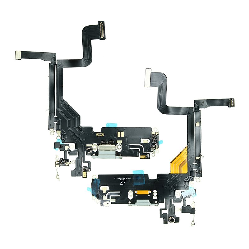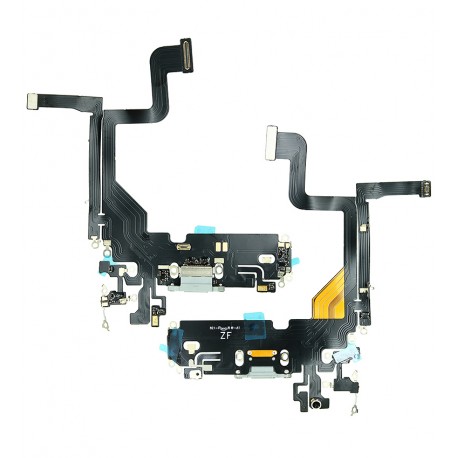 Шлейф для Apple iPhone 13 Pro, коннектора зарядки, серый, с микрофоном, з компонентами, China quality, Lightning (175502)