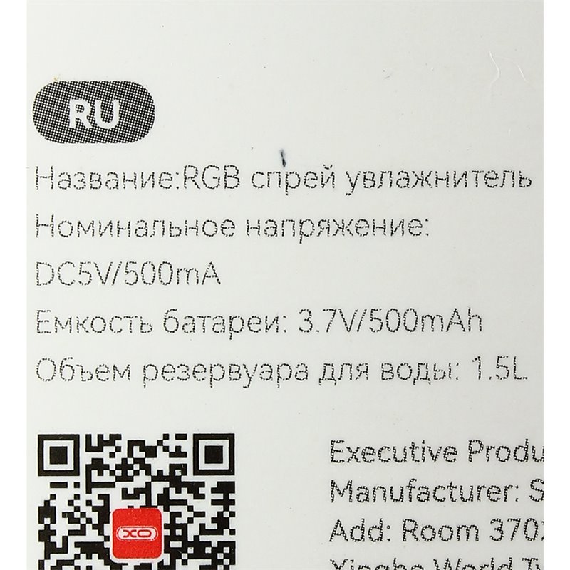 Увлажнитель воздуха XO HF13 двойной режим распыления, RGB подсветка, 2L, 400mAh (Белый) (175527)