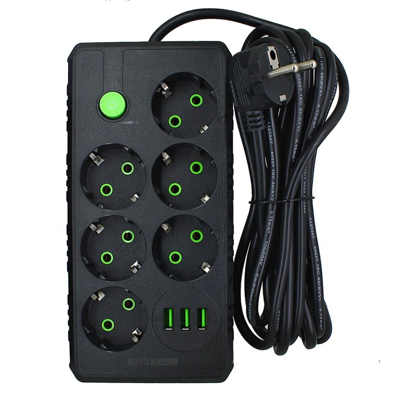 Удлинитель UA Power F17U 6 розеток + 3USB, 4м (Чёрный) (175528)