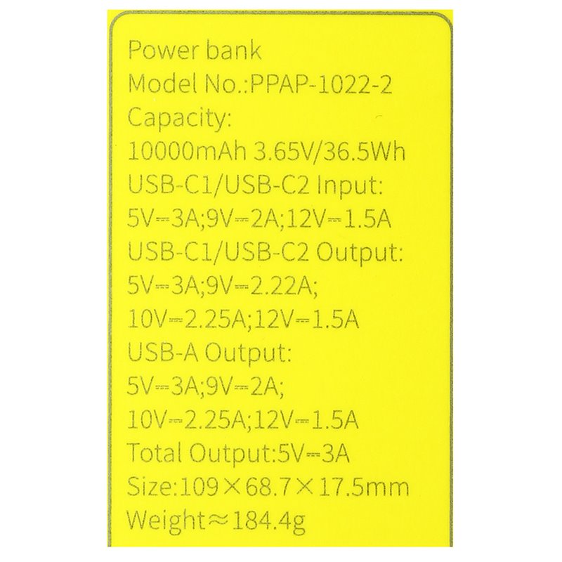 Power bank Baseus EnerFill FP21 10000mAh 22.5W (Type-C to Type-C Cable 20V/3A 30cm) P1008210D123 (Чорний) (175536)