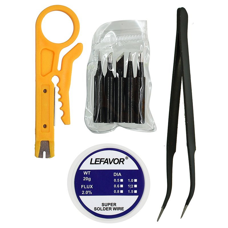 Набор для пайки Levafor 908 (паяльник 80Вт с регулировкой температуры + подставка + 5 наконечников + припой) (175607)