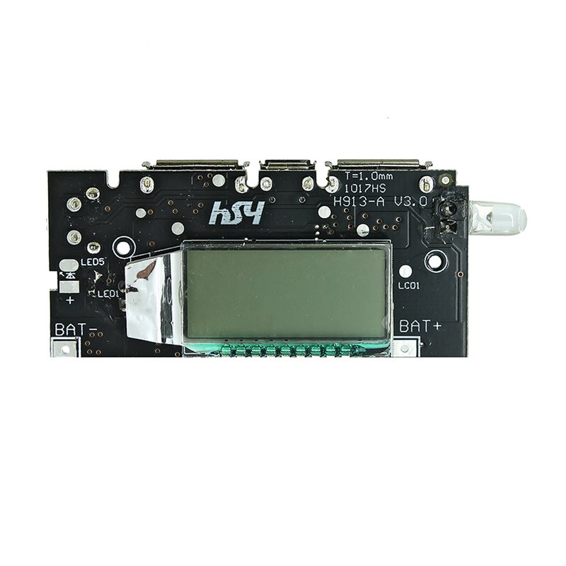 Модуль PowerBank H913-A V2.0 с ЖК индикатором, 1S, 2USB, 5V 2.1A / 5V 1A (175614)