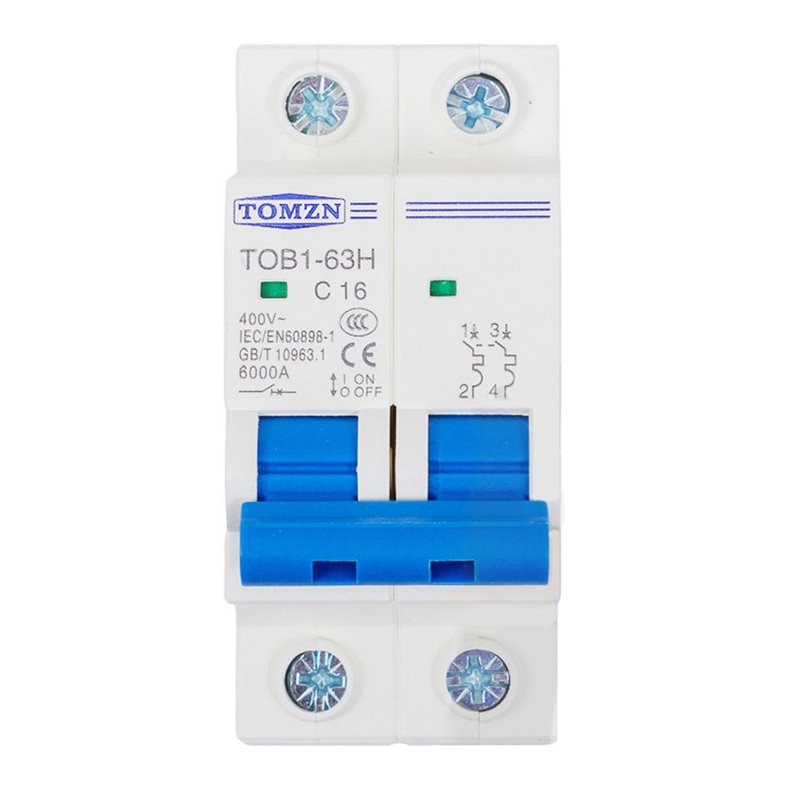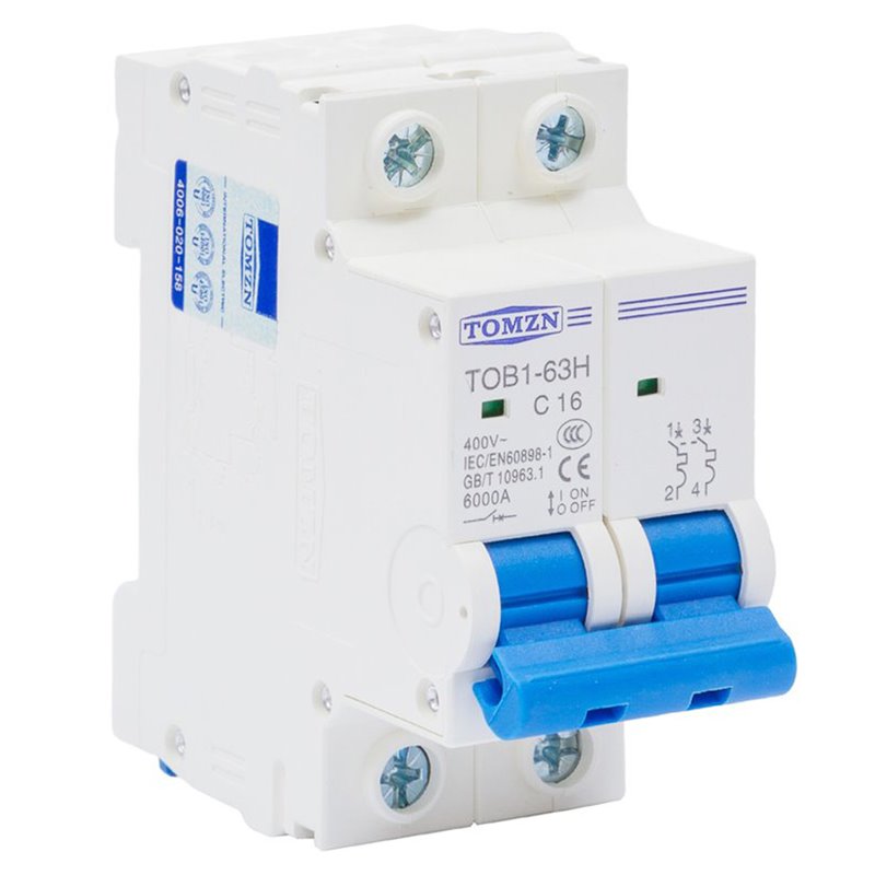 Автоматический выключатель переменного тока TOMZN TOB1-63H-C16, 2P, 230В-400В, 16А (175868)