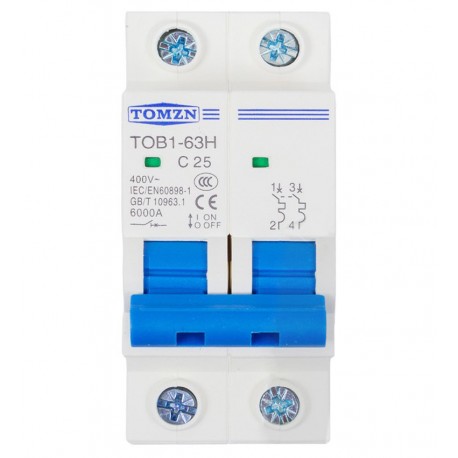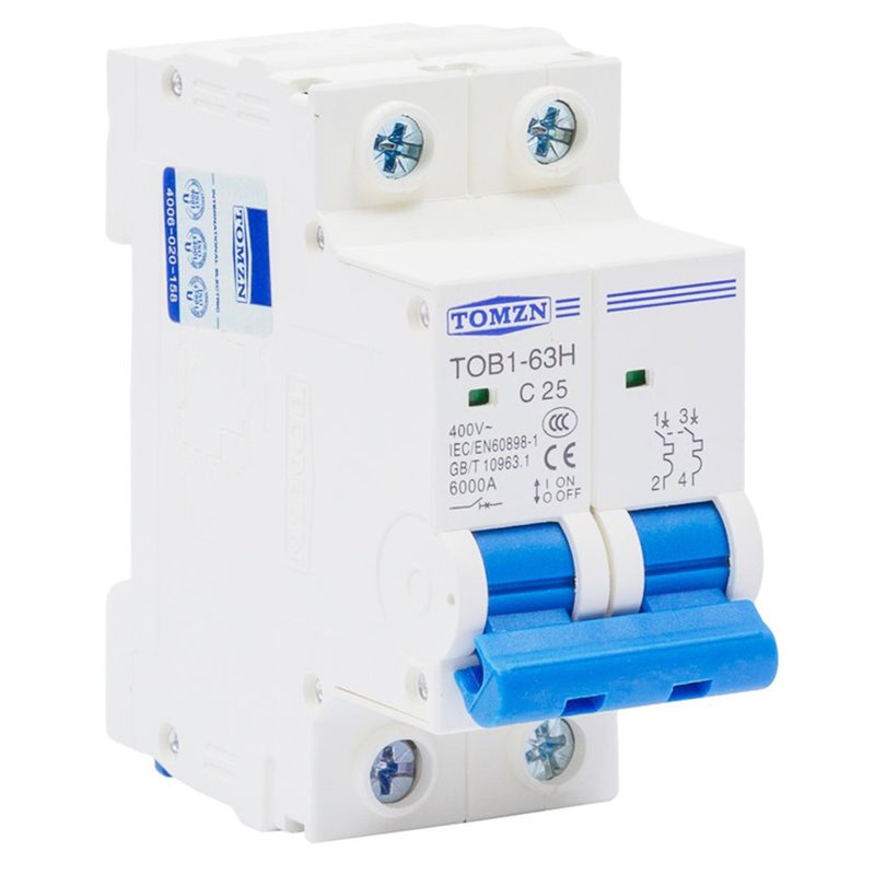 Автоматический выключатель переменного тока TOMZN TOB1-63H-C25, 2P, 230В-400В, 25А (175870)