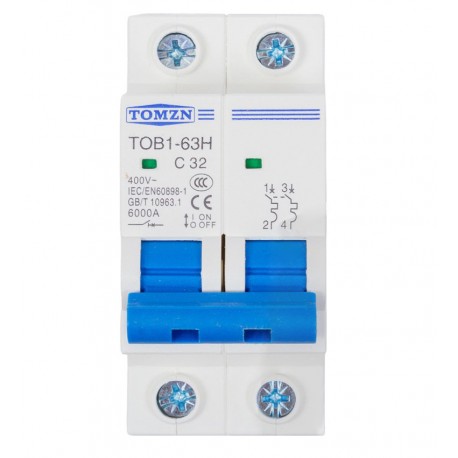 Автоматический выключатель переменного тока TOMZN TOB1-63H-C32, 2P, 230В-400В, 32А (175873)