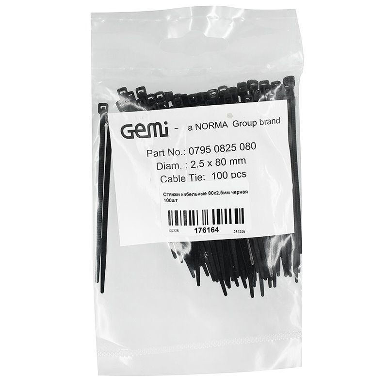 Стяжки кабельные 80х2,5мм черная 100шт (176164)