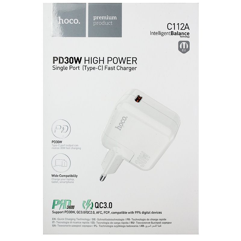 Зарядное устройство Hoco C112A Advantage single port Type-C, 30W/3A, PD/QC (white) (176190)