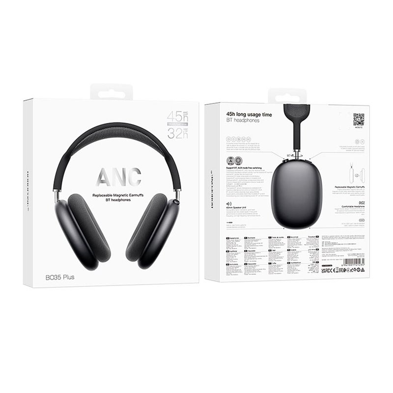 Bluetooth наушники Borofone Adorable ANC BT headphones BO35 Plus BT5.4, AUX, 32/45h (grey) (176194)