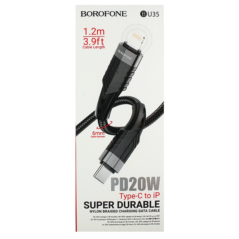 Кабель Type-C - Lightning, Borofone BU35, 1,2 метра, 20W, PD, черный (176339)