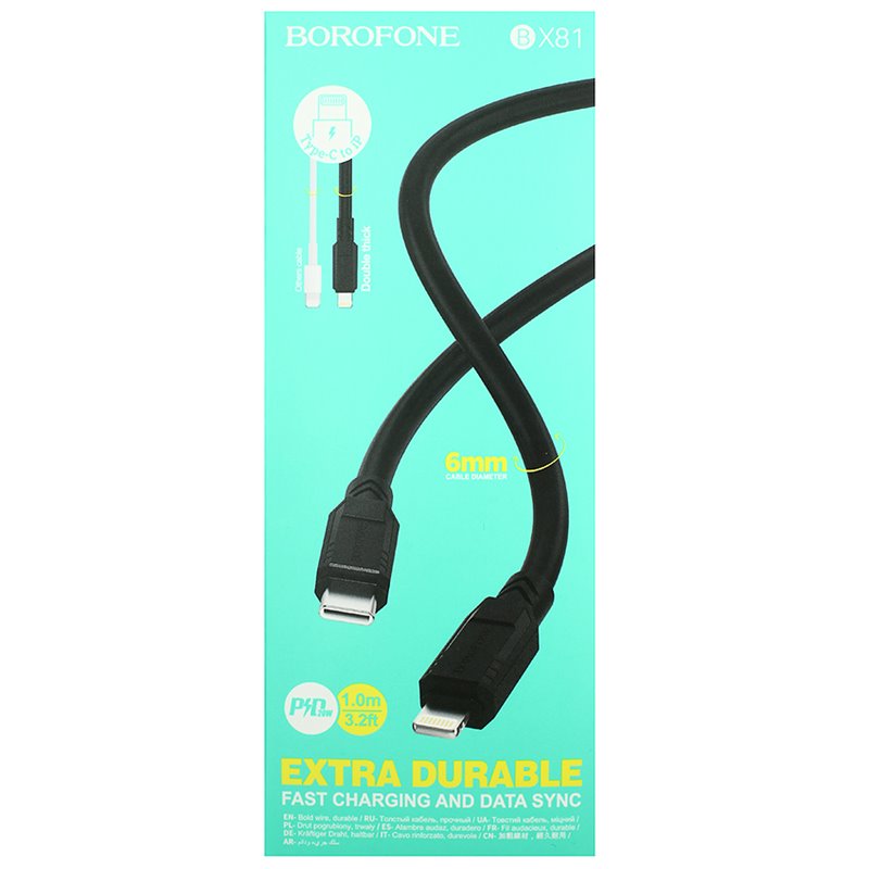 Кабель Type-C - Lightning, Borofone BX81, 1 метр, PD 20W, силиконовый (176348)