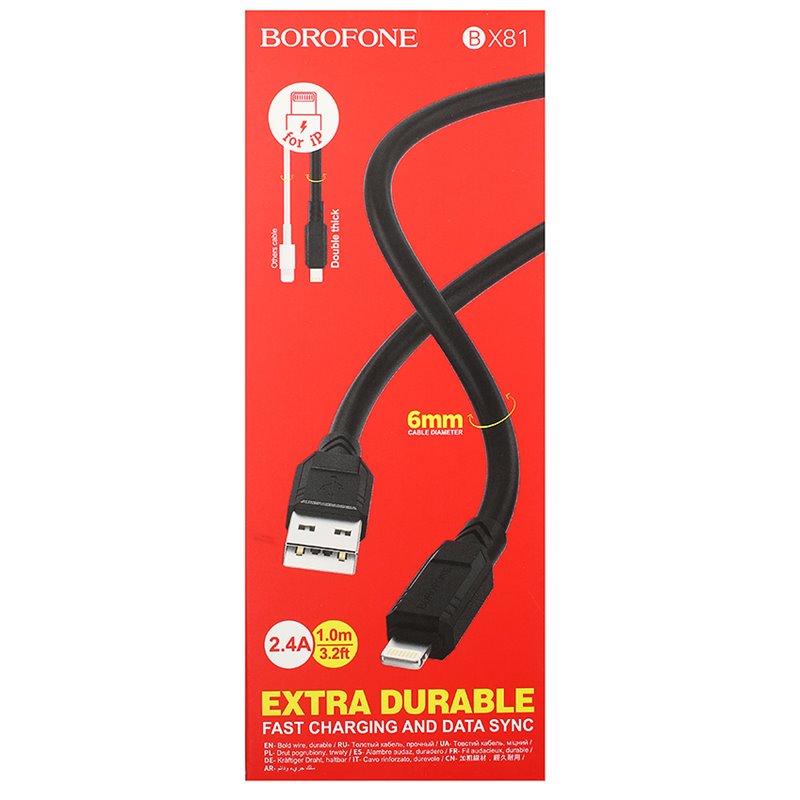 Кабель Lightning - USB, Borofone BX81, 1 метр, 2,4А, силиконовый (176352)