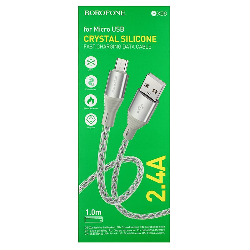 Кабель Micro-USB - USB, Borofone BX96, 1 метр, 2,4А, силиконовый, прозрачный (176364)