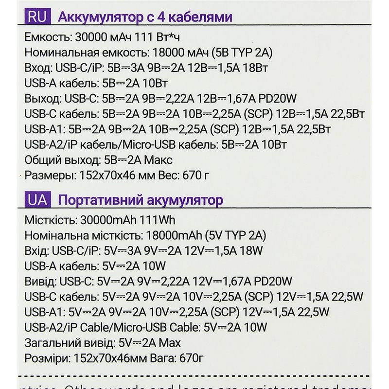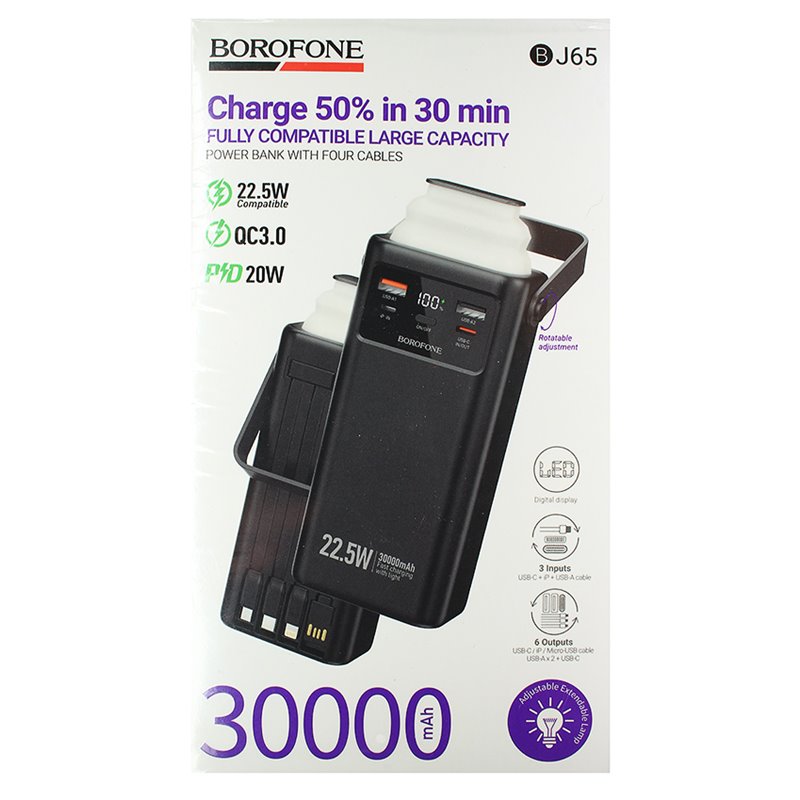Power bank Borofone BJ65, 30000 mAh, 22.5W+PD20W, черный (176419)