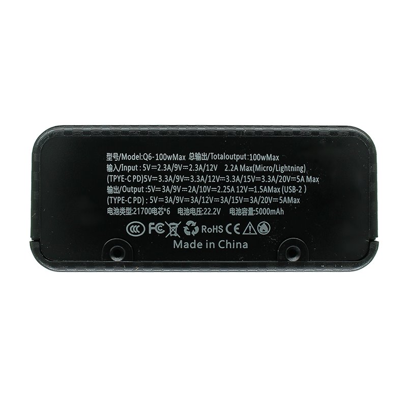 DIY Powerbank Q6, корпус под элементы 21700 до 6 шт, 100W, черный !БЕЗ ГАРАНТИИ! (176447)