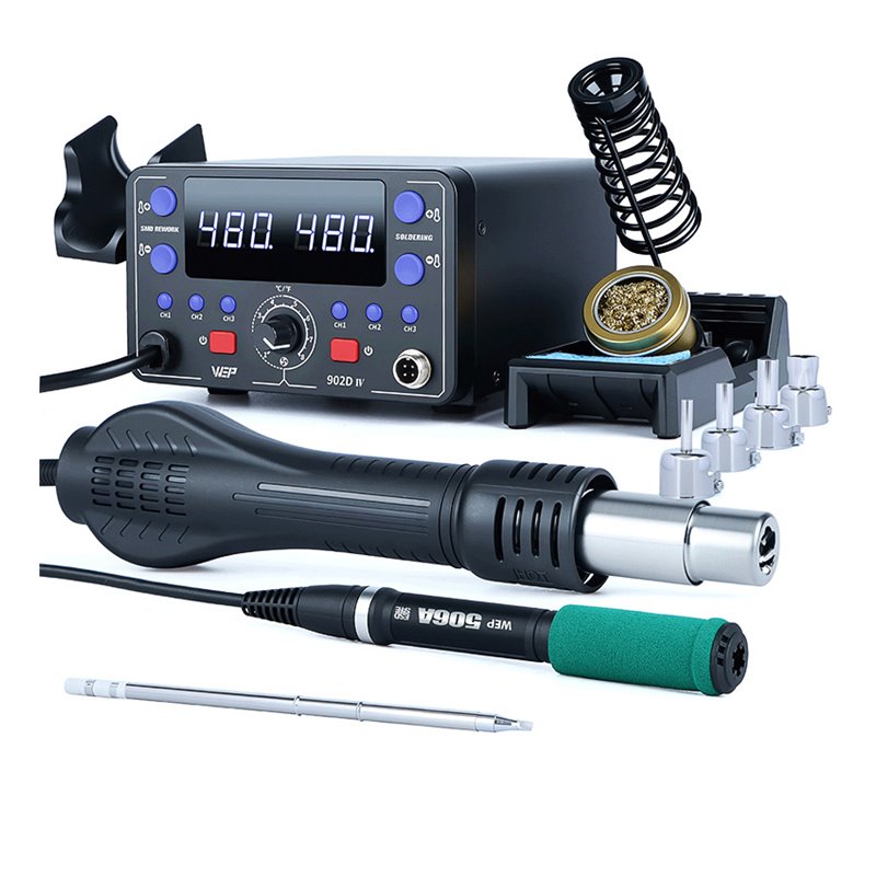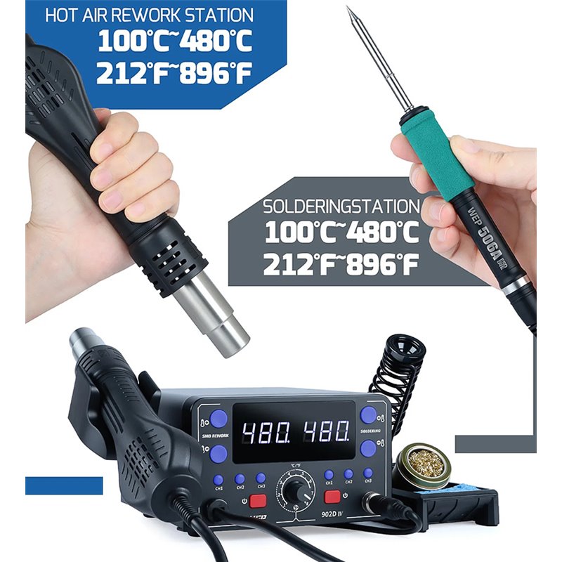 Паяльная станция прецизионная WEP 902D-IV, паяльник T12, 3 канала памяти, 200C - 480C, фен, 3 канала памяти, 100C - 480C, 775W (176450)